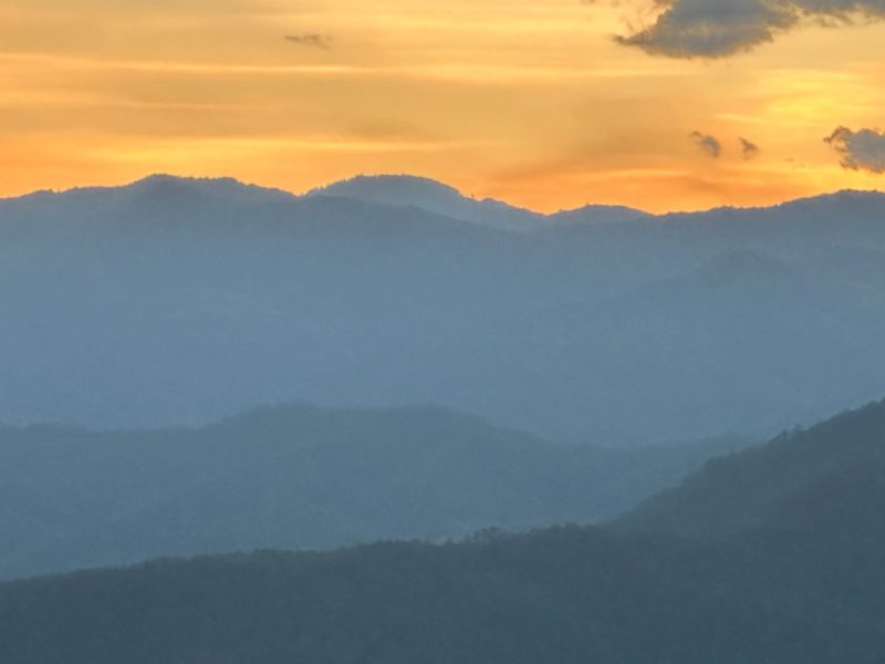 Layers of mountain ridges overlap in soft gradients of blue, while beyond them, the morning sun begins to dye the sky in golden hues. In the silence, light slowly spreads, gently announcing the start of a new day in Yunnan’s majestic nature, nurtured over countless years.